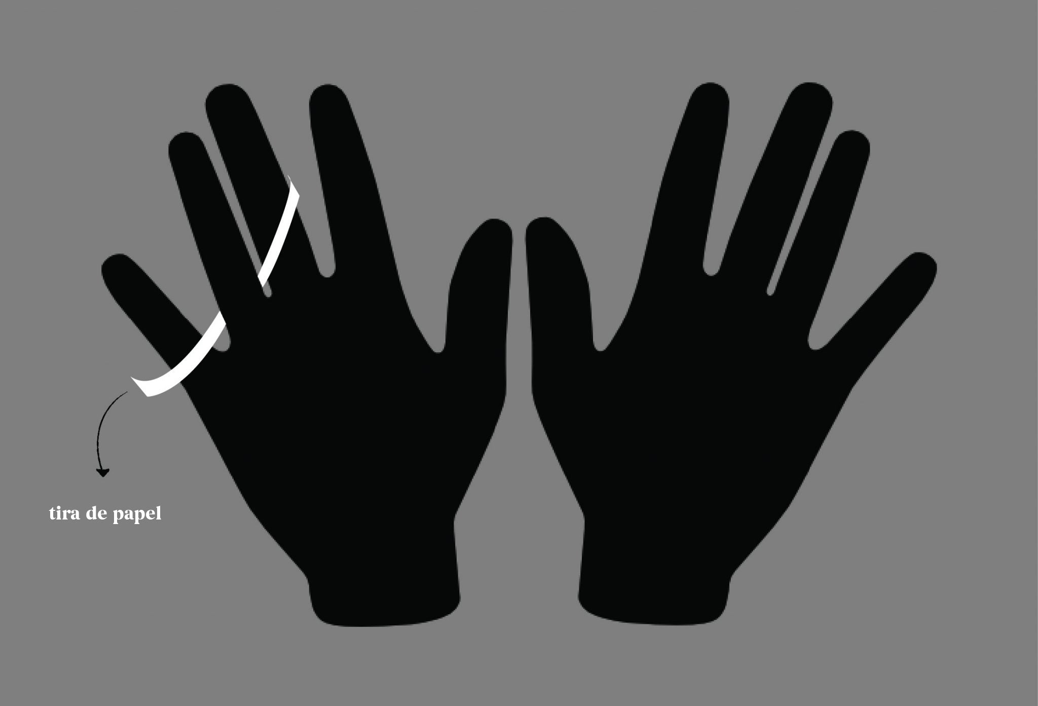 Envuelve el papel alrededor de tu dedo, asegúrate de que esté bien ajustado y cómodo y marca con una linea el lugar donde se encuentra.