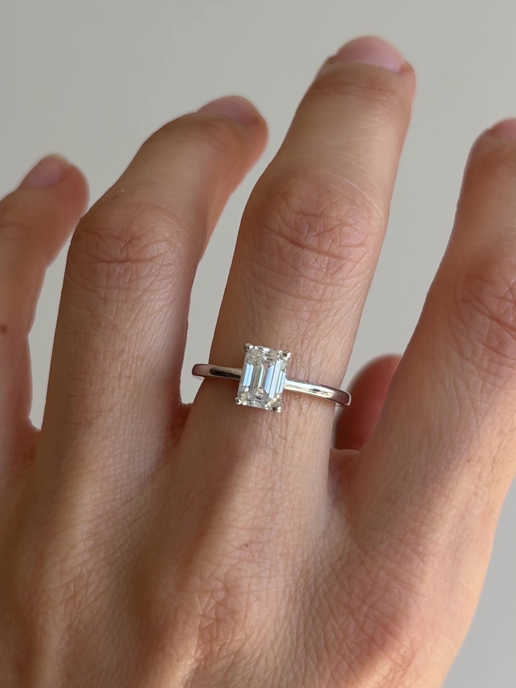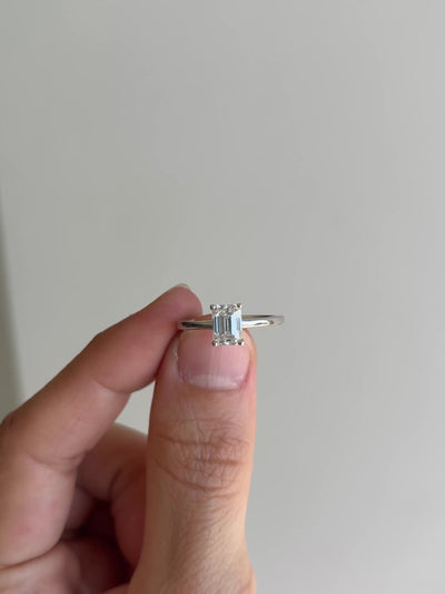 Pieza única hecha a mano en plata rodinada* con una moissanita de 1.00 ct de 5x7 mm. Calidad: VVS1. Color: Grado D (máxima pureza). Talla 6 (52 mm de circunferencia).