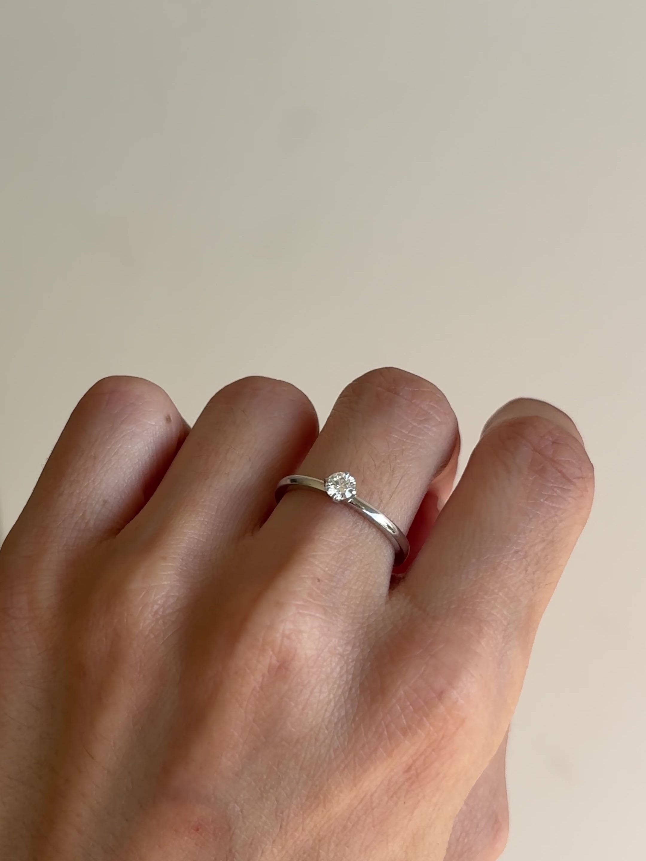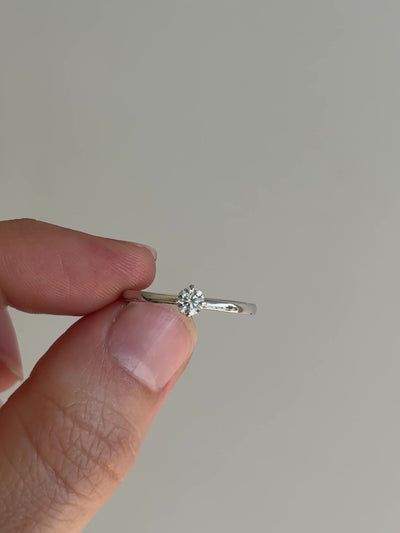 Pieza única hecha a mano en plata rodinada con una moissanita de 0.25 ct de 4 mm. Calidad: VVS1. Color: Grado D (máxima pureza). Talla 7 (54.5 mm de circunferencia).